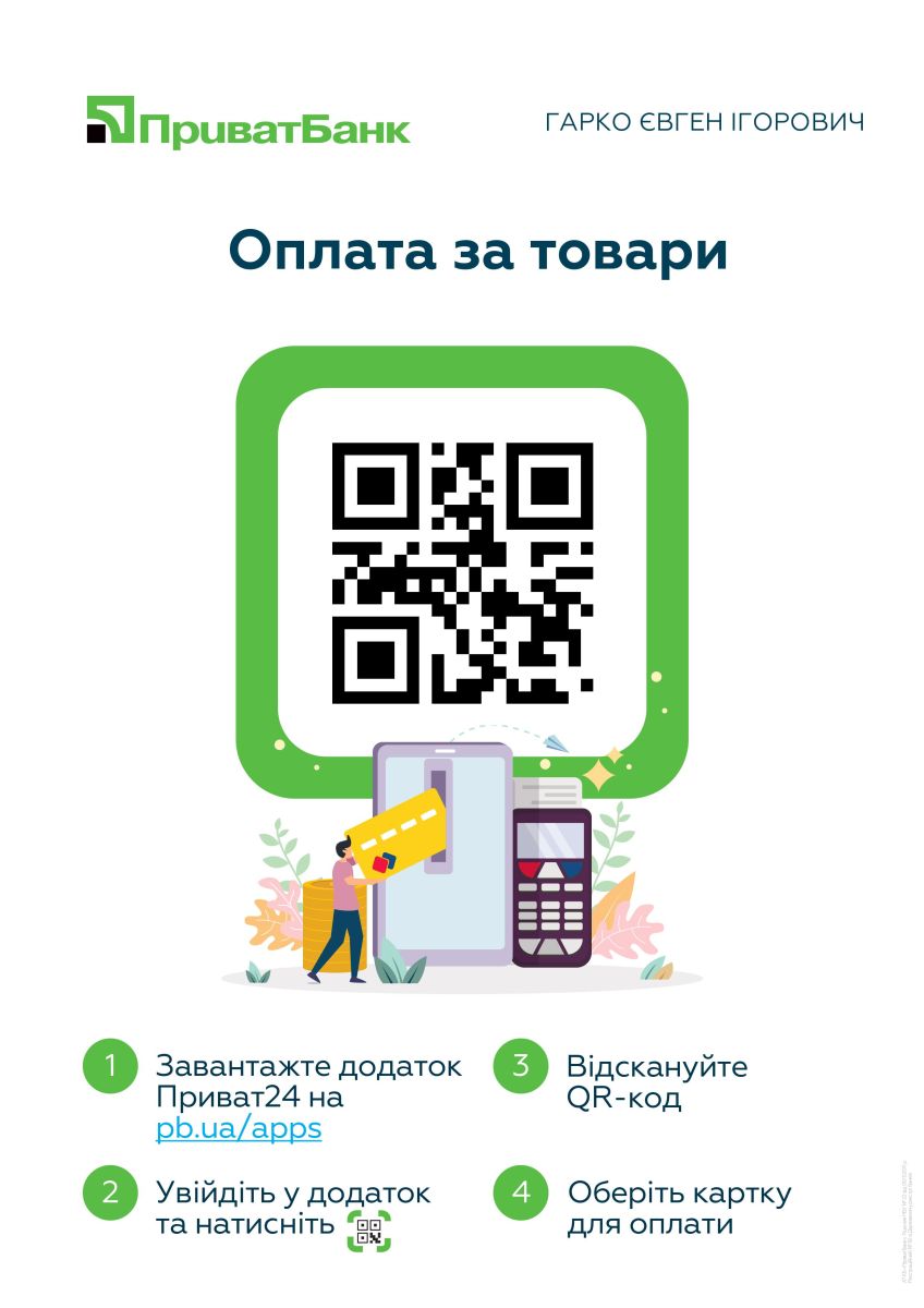 Получатель платежа: ФЛП Гарко Евгений Игоревич